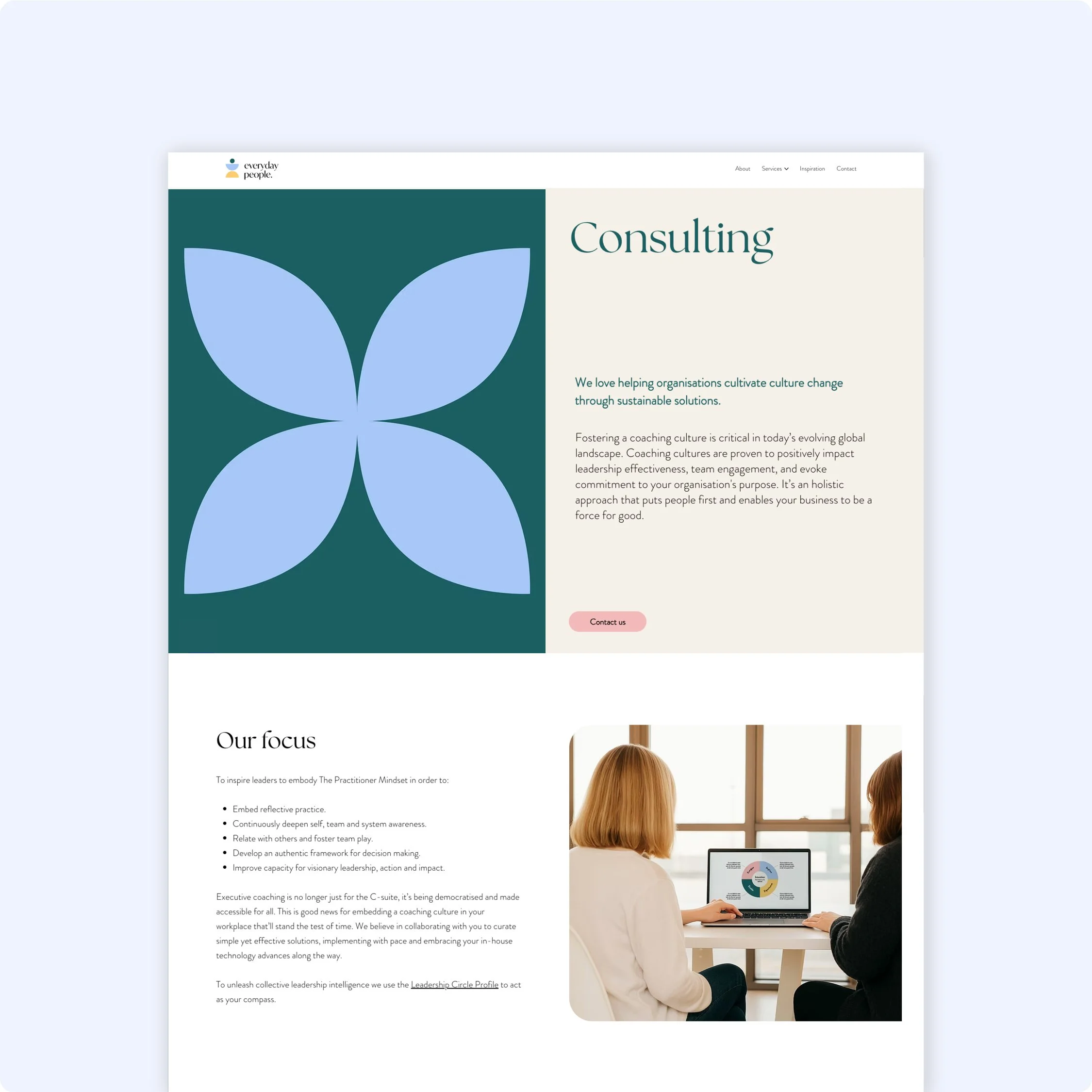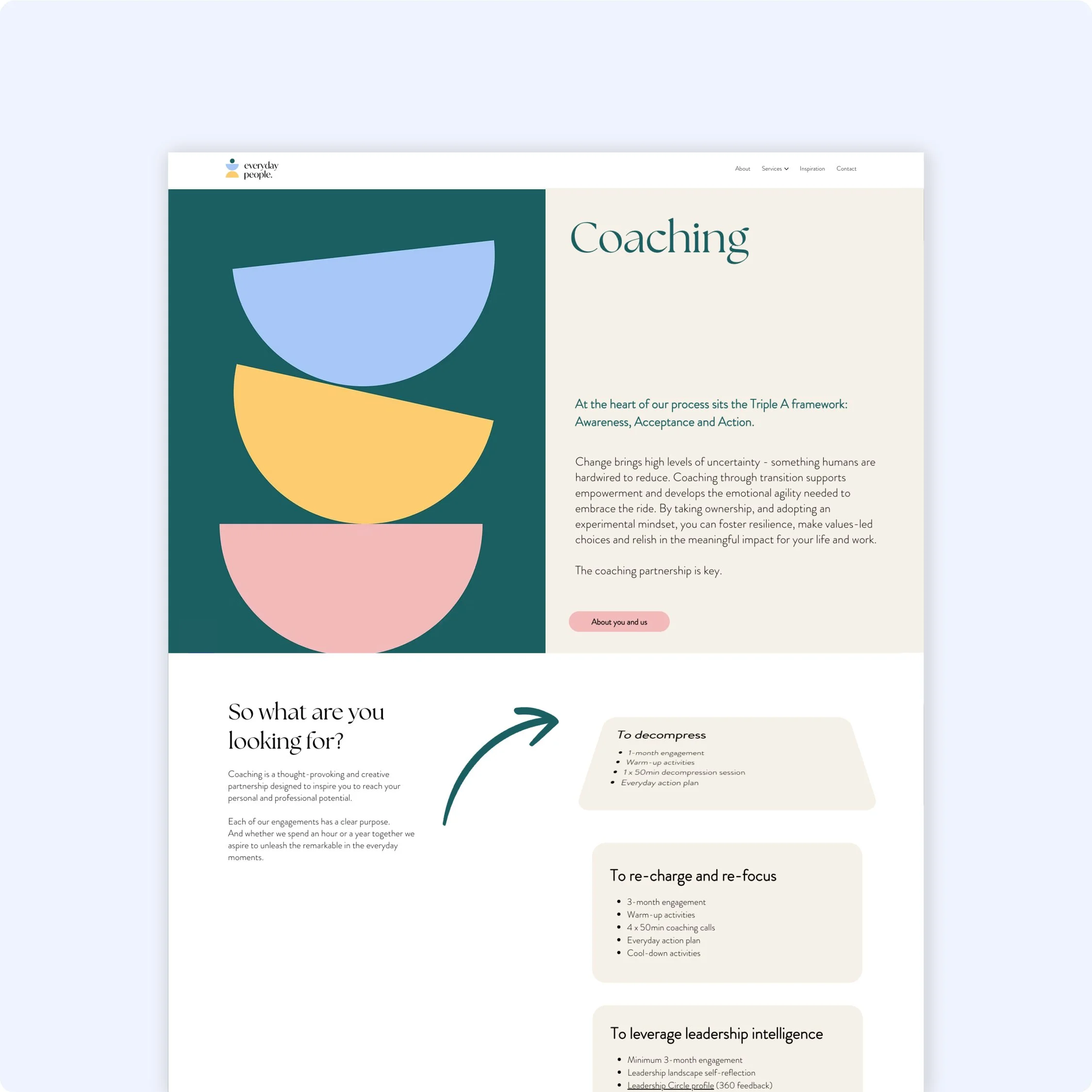 Everyday People is a coaching and consultancy studio that partners with organisations and individuals to navigate complex transitions, combining coaching, consulting and wellbeing programmes to unlock sustainable performance and human potential.